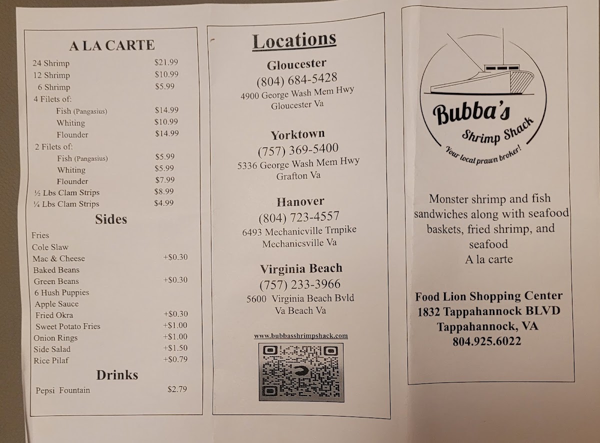 Welcome to Bubba's Shrimp Shack Tappahannock, a delightful seafood haven nestled in Tappahannock, Virginia. As you step through the doors, you'll be greeted by the warmth of friendly staff, creating an inviting atmosphere. The menu here is a seafood lover's dream, featuring a variety of fresh-made fish baskets and mouthwatering meals.
